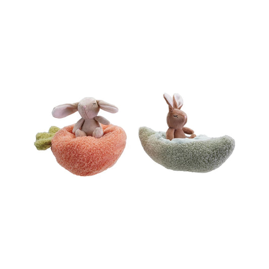 Plush Animal with Carrot/Pod Shaped Bed